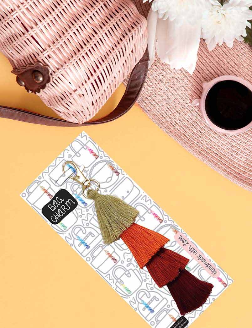 Handcrafted with beautiful cotton silk yarn and golden metal key ring, these Bag Charms make a lovely and unique addition to your accessories.
